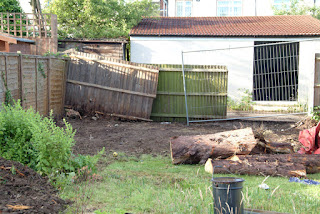 First order of business was to fell a 60 foot fir tree which was dropped into the garden itself and then chopped up.
