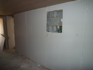 The cinema room also received a coat of plaster on the wall to the utility room