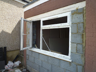 Work had pretty much ground to a halt awaiting the delivery of the window, eventually John decided to go ahead with building the front wall anyway and then come back to fit the window.