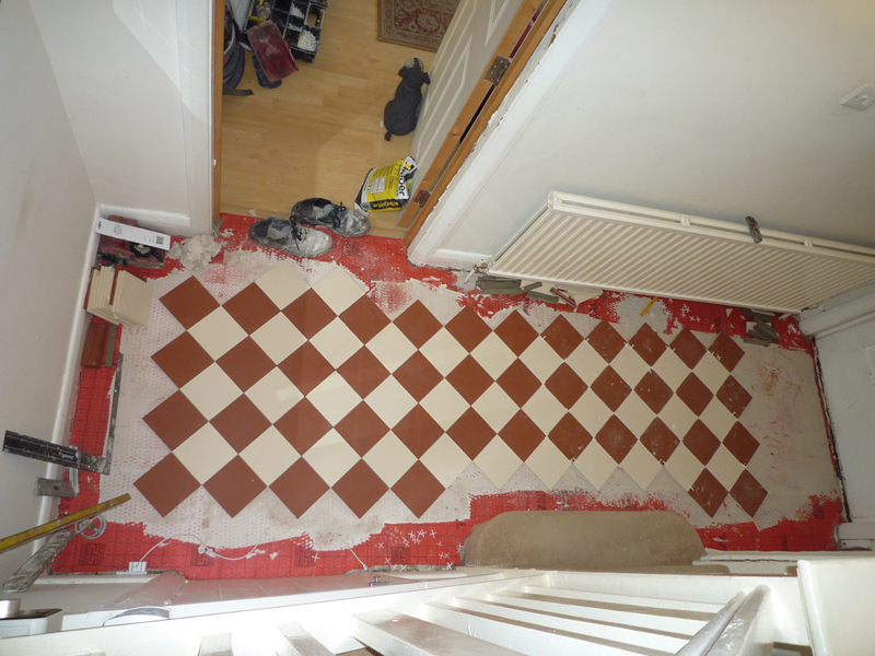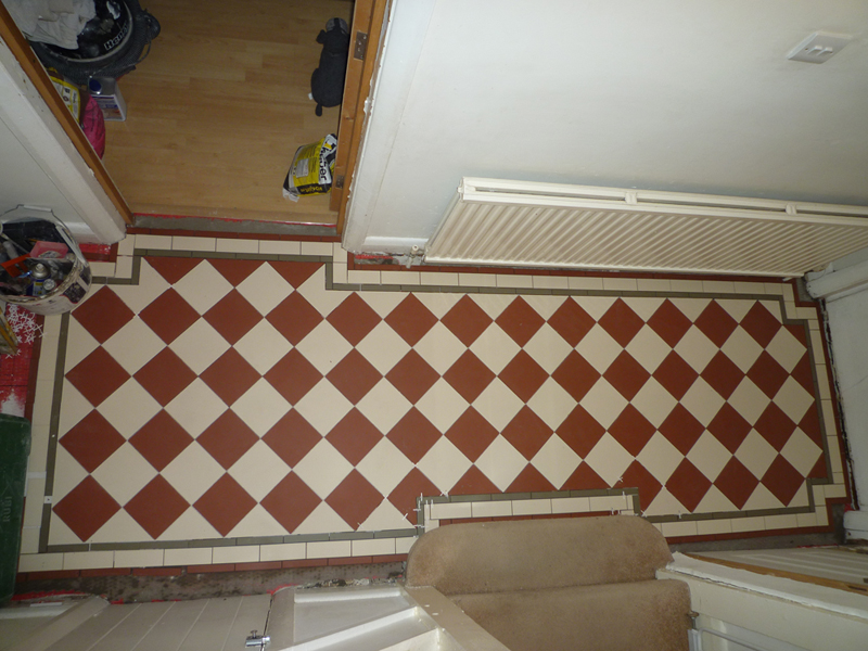 With Victorian tiling, it is not simply a case of lay your edge pattern around the outside edge and then fill the centre section with the remaining tiles.