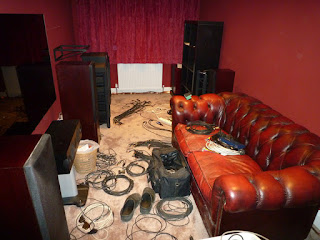 With the TV on the wall, I could now start to bring items through starting with the centre, main and rear speakers as well as the equipment stands as these cleared out a decent level of space in the family room next door.