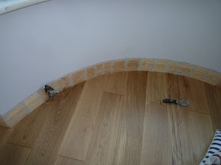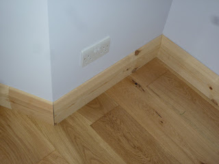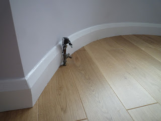 I am not a big fan of quadrant with wood flooring, so I left the skirting until after the flooring was done, so that I can have nice clean lines at the edge of the room.