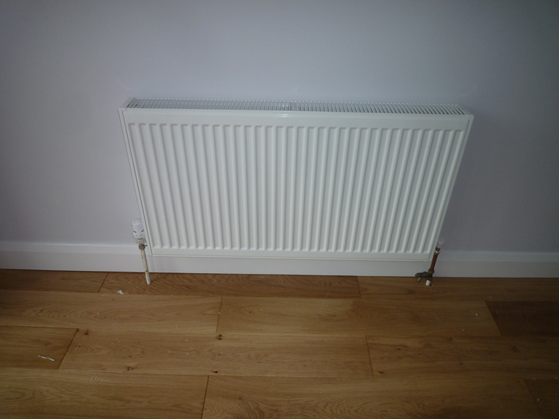 The moment of truth – water back on and the two new radiators both leak by the new thermostatic valves – there is not enough of a taper on the tail that goes into the radiator and so it does not seal well.