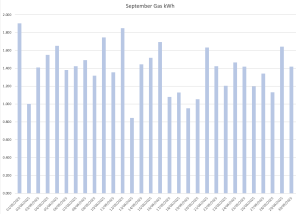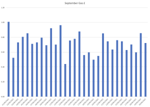 Gas prices remained about the same this month, I would have paid a lot more had I still been on the Octopus Standard Tariff, which was £0.0699 per kWh for September £40.03 ((427 * 0.0699) + 10.18sc) or an additional £12.06 for the month.