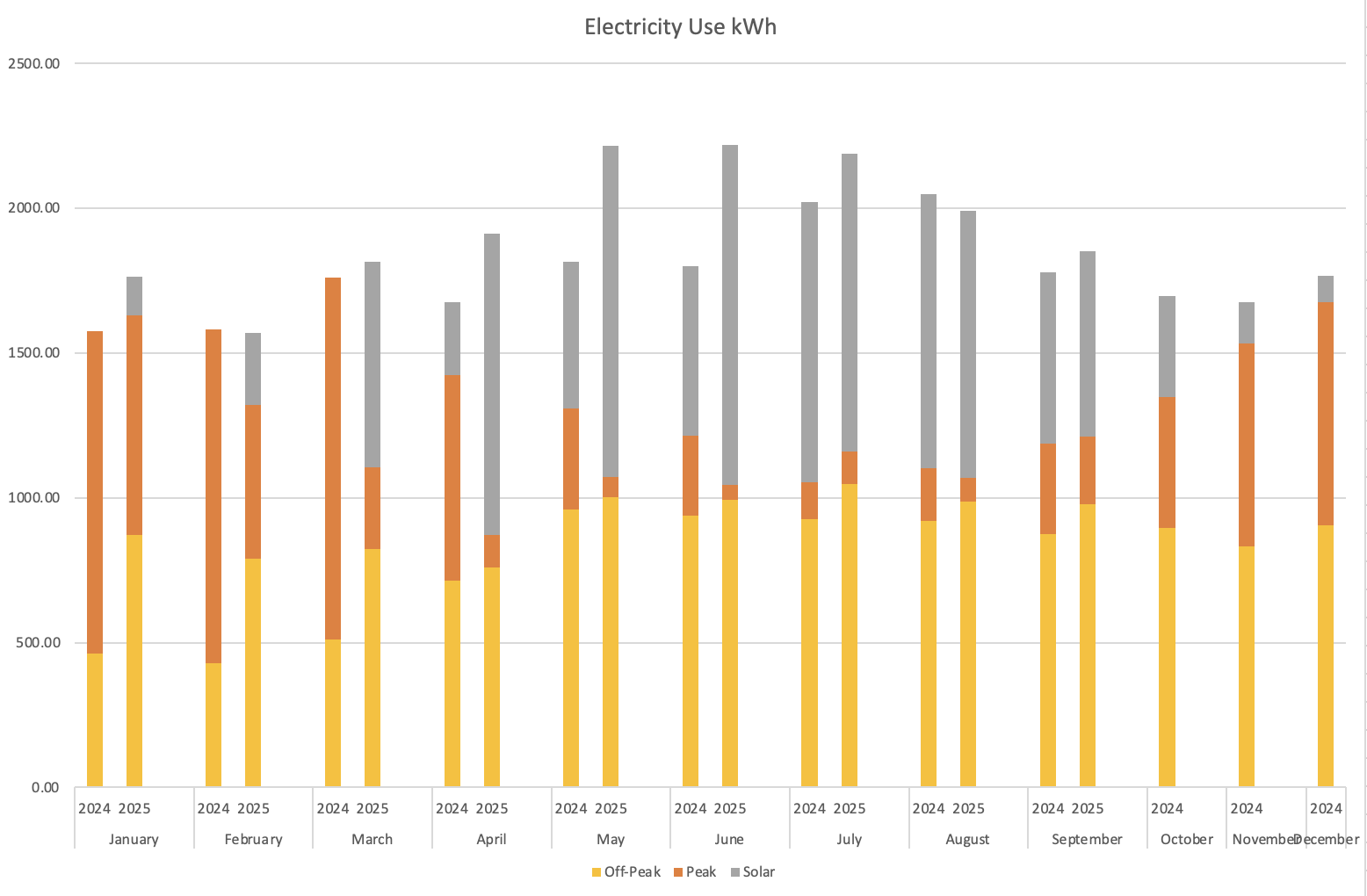 Electricity demand for the month of September: 1709kWh for 2025, 1717kWh for 2024 and 1734kWh for 2023.