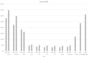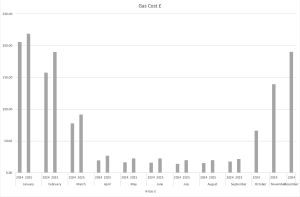 The heating was off for the entire month, so gas was only used for heating the hot water.