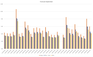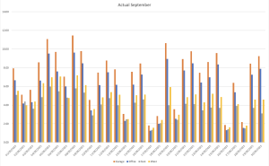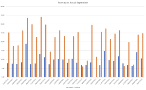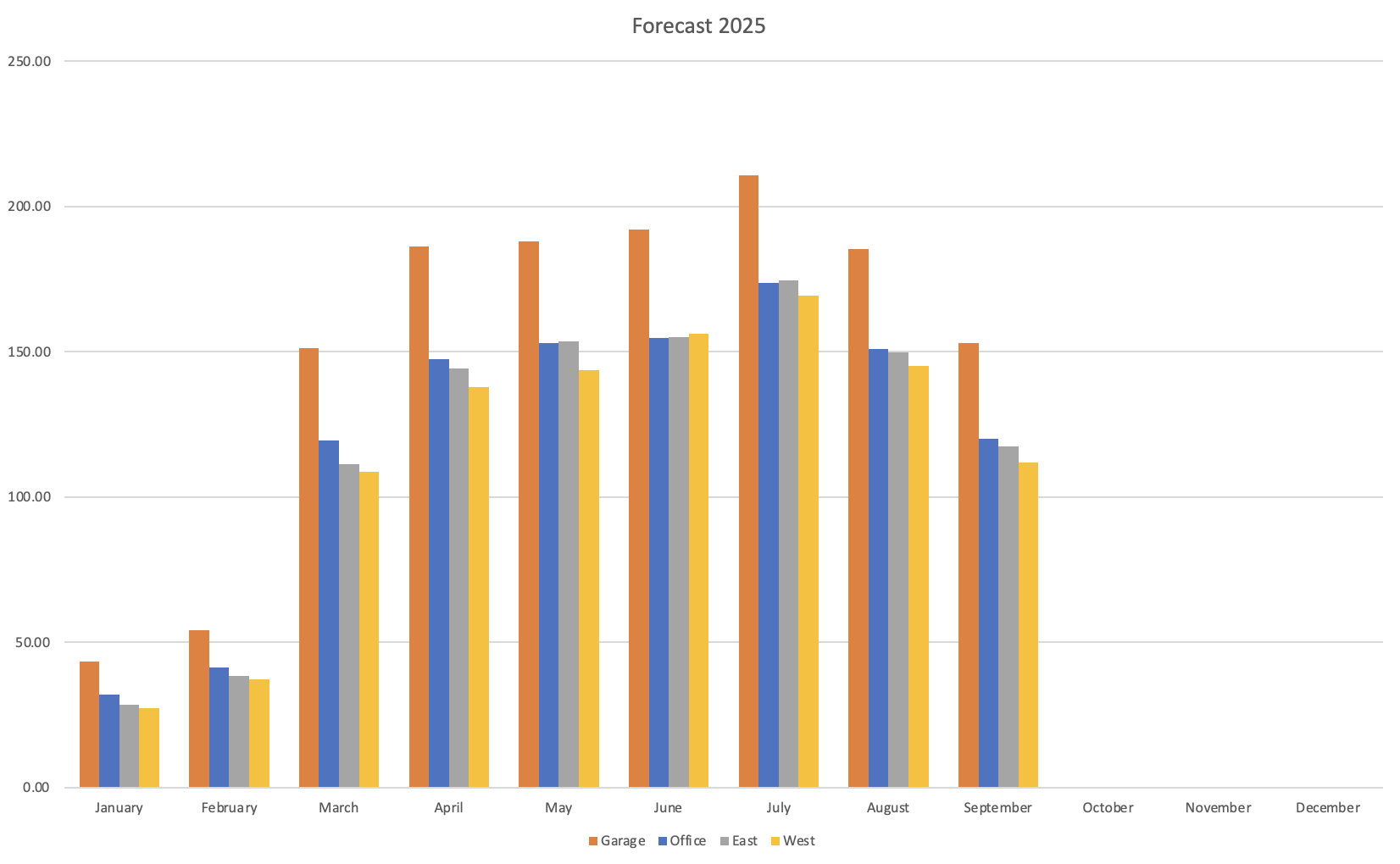 Actual production for September far exceeded the forecast for every day, often by way more than double, I had some internet issues on the 20th, so I have no forecast data for that day.