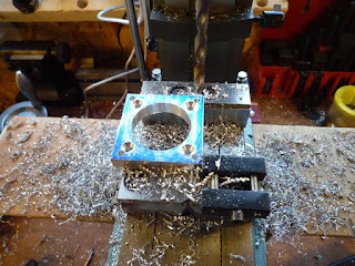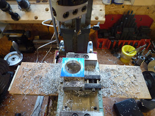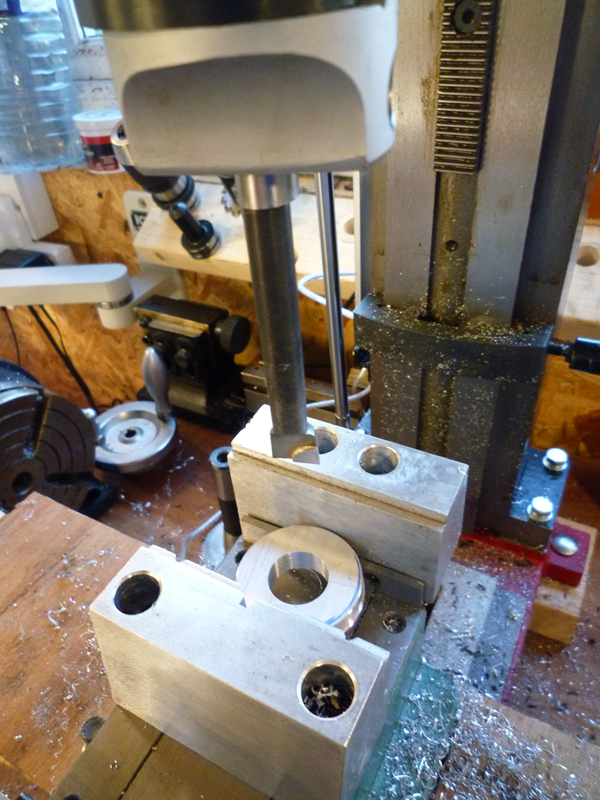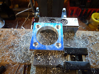 I moved the plate to the milling machine to bore the central hole to the finish size of 23mm diameter.
