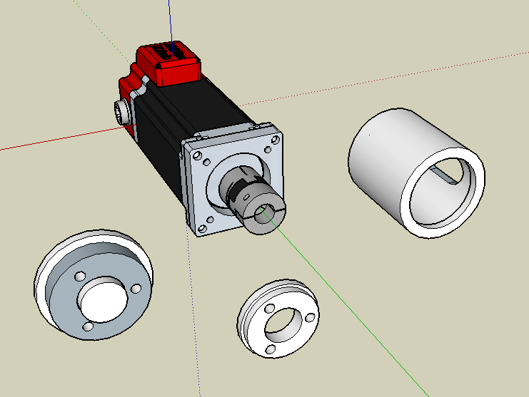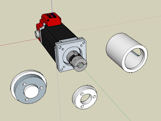 Here is the Sketchup drawing of all the component parts for connecting a nema23 stepper motor to the rotary table, the drawing also includes the rotary table mounting plate just for completeness.