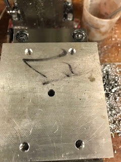 The first operation was to square it up and then drill and tap 4 M8 holes at on a central 88x45mm rectangle.